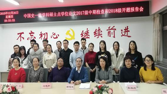 为加强研究生培养的过程管理,提高研究生学位论文的写作质量,2019年12月26日下午,今年会官网在博学楼学院会议室举行了中国史一级学科硕士点学位论文2017级中期检查和2018级开题报告会。参加检查和报告会的有包头医学院刘忠和教授,中国史一级学科硕士点导师郝建平教授、刘春玲教授、宁侠博士、张淑利副教授,代小博士,刘静静老师担任秘书。报告会由院长胡琮禹主持,学院全体研究生参加了报告会。