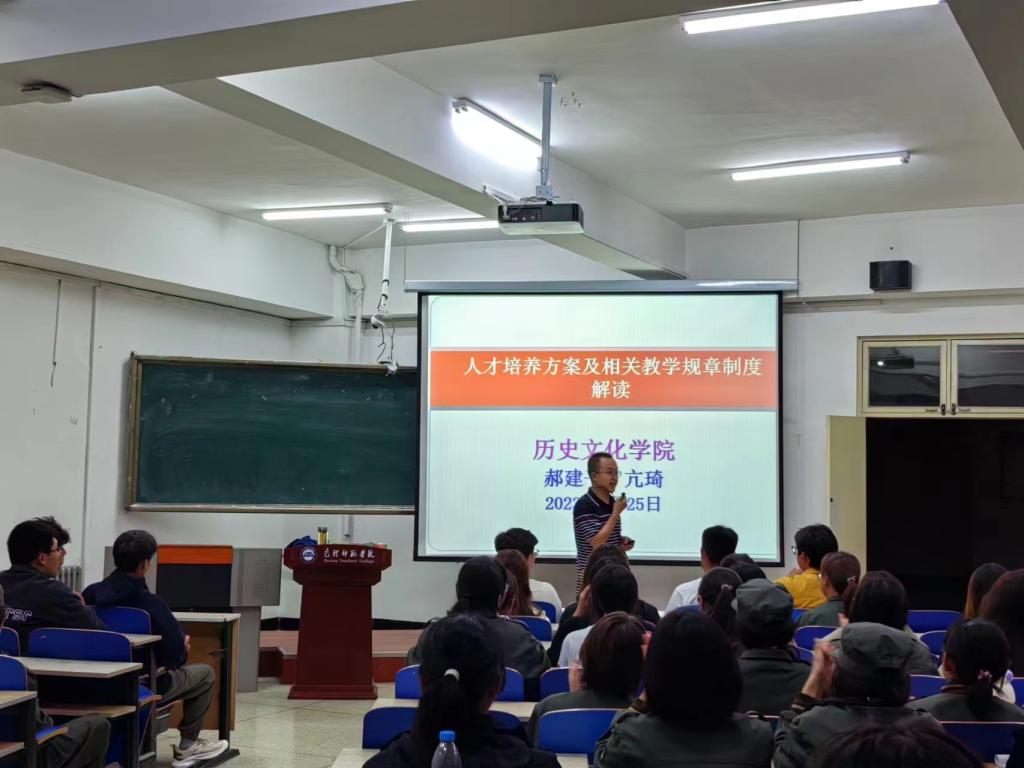 为了帮助2023级本科新生了解各专业人才培养目标、加强学生对2023版人才培养方案的了解,切实做好大学四年学习规划。9月25日晚,今年会官网于博西606教室开展本科新生专业人才培养方案解读会。会议由亢琦副院长主讲,2023级历史学和图书馆学专业全体学生参加,助理班主任高蕾和周皓月也参加了会议。