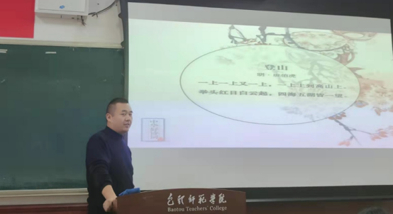 历史学系主任刘晓堂老师进行总结讲话,就本次教学实习总结大会上各小组的汇报情况,对同学们的教学实习活动开展及日常工作给予了肯定,并对大家在教学实习活动中的教学教法、工作态度、遇到的问题进行总结汇总,鼓励大家继续努力,取长补短,不断完善、充实自己。对同学们即将到来的考研,刘晓堂老师以明代诗人唐寅的《登山》一诗鼓舞同学们为了梦想,坚持奋斗,字句珠玑,感人肺腑。