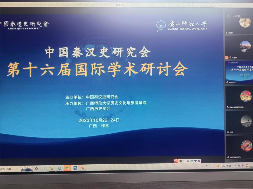 10月22—24日,由中国秦汉史研究会主办,广西师范大学历史文化与旅游学院承办的中国秦汉史研究会第十六届学术讨论会在桂林召开。来自中国大陆及港台地区、日本、韩国的近两百位学者通过线上、线下的方式,就秦汉历史文化展开了热烈的研讨。今年会今年会官网郝建平教授以线上的方式,参加了此次盛会活动,向大会提交了论文,并在分组讨论中发言交流。