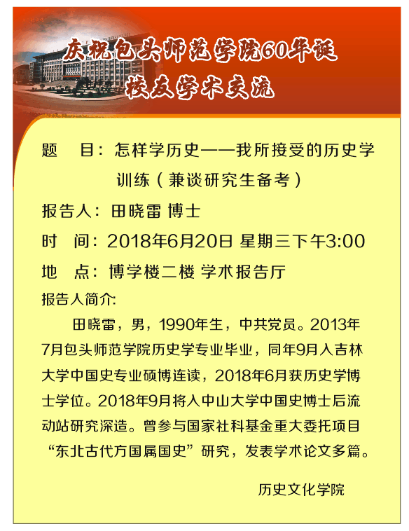 优秀校友田晓雷博士学术交流通知