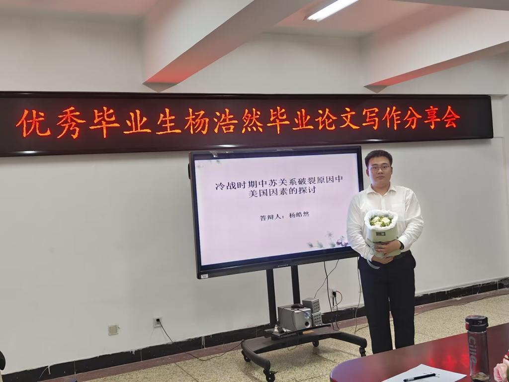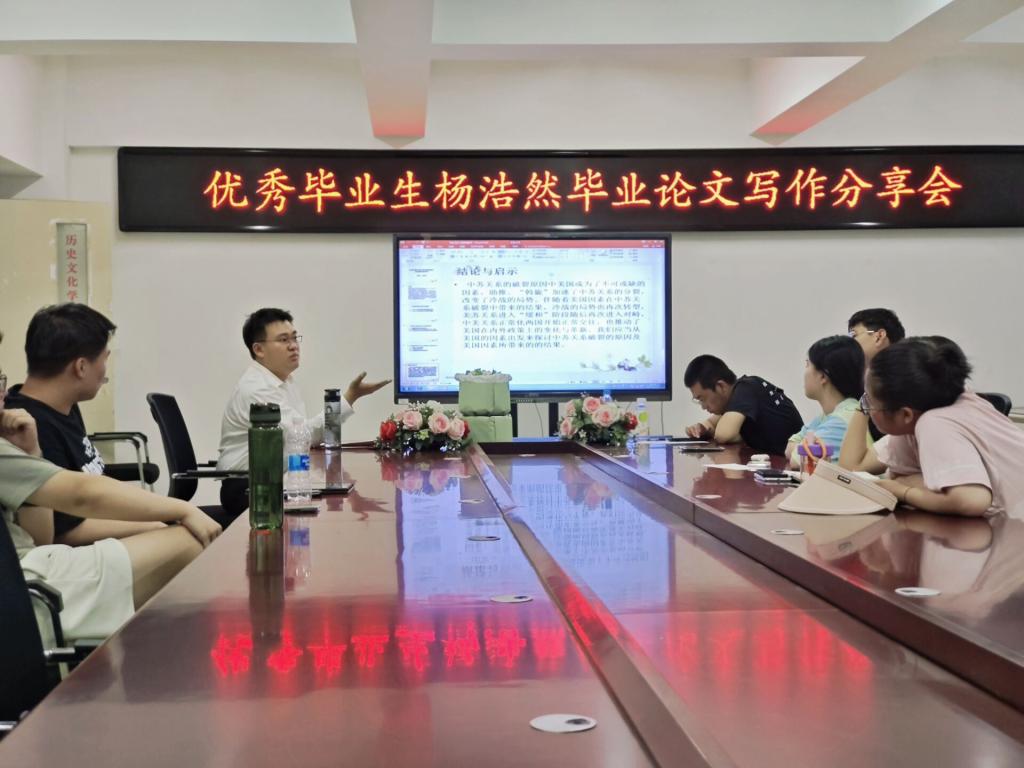 2023年6月15日晚19:00今年会官网优秀毕业生2019级历史班杨皓然同学在学院825会议室举办毕业论文写作分享会。此次分享会由杨皓然同学主讲,2019级历史班吴宏坡同学主持与评议,2019-2022级历史班部分同学出席此次分享会。