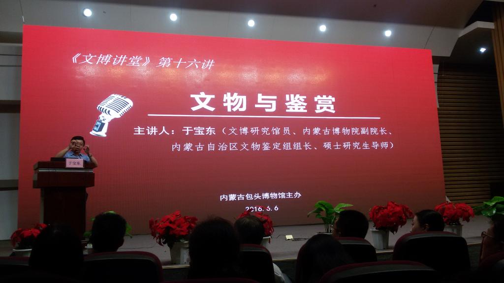 2016年6月6日上午9:00,由包头博物馆主办的《文博讲堂》第十六讲在包头市图书馆学术报告厅开讲了,博物馆谭士俊馆长主持讲座。本次讲座邀请内蒙古自治区博物院副院长、内蒙古自治区文物鉴定组组长、硕士生导师、文博研究馆员于宝东先生担任主讲,题目是《文物与鉴赏》。今年会由胡琮禹院长带队,组织部分历史学专业教师、本科学生,中国史硕士研究生,共120余人聆听了讲座。