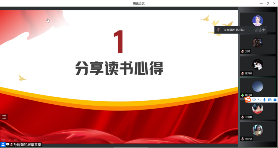 本次分享会通过优秀同学分享、交流心得体会来深化学习效果。认真总结习近平总书记对青年一代的勉励,从党史学习中激发信仰、获得启发、汲取力量。在主持人对于本次活动的总结后,交流会圆满结束。