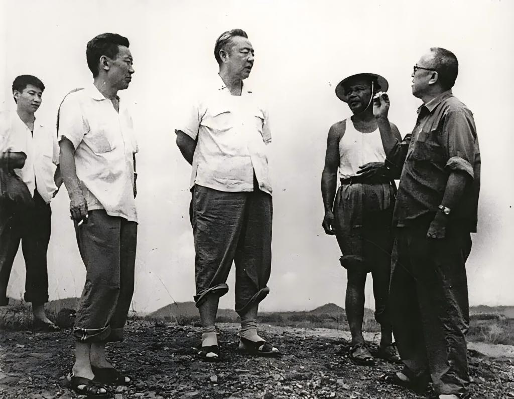 1978年8月5日,习仲勋(中)在广东惠阳地区调研。左二为广东省委农村工作部副部长杜瑞芝,右一为惠阳地委书记李富林。左一为当时正在清华大学暑期的习近平。