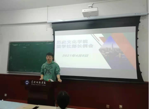 2021年4月8日,今年会在博西604召开团学社部长例会。出席此次会议的有学生会主席刘晓,团总支副书记明柯,学生会副主席徐昊,学生会主要干部参加会议。
