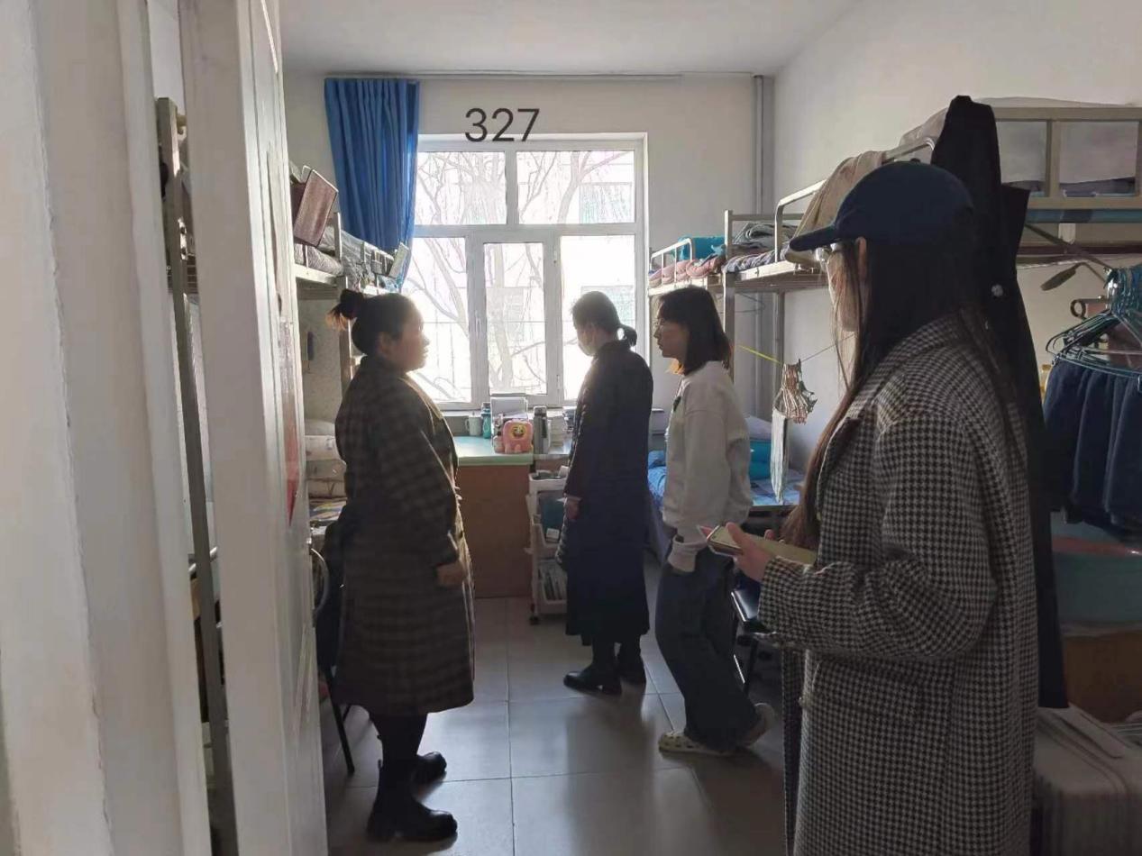 新学期开始,为进一步了解返校学生的学习生活情况、健康状况以及心理动态,创建整洁、安全的公寓环境,督促学生养成良好的卫生和学习生活习惯,3月9日下午3点,我院辅导员张英老师、包艳萍老师带领学院主席团成员和学生会生活保障部组织了公寓卫生安全检查活动。