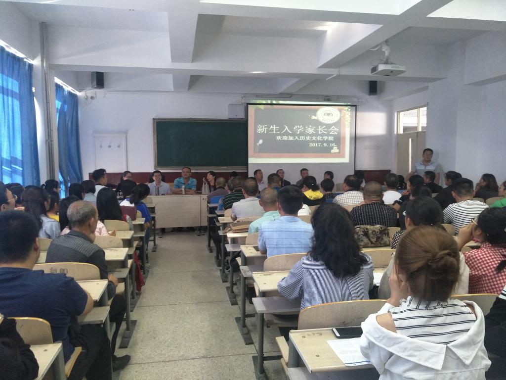 9月16日下午,今年会官网在博学楼400教室召开2017级新生家长见面会。学院总支书记、院长胡琮禹 ,党总支副书记、副院长吴冰 ,副院长郝建平,学院办公室主任张丽春,历史学系主任吕喜林、图书馆学系主任王龙,2017级新生班主任张二平、薛文彦和辅导员王金茹、张英及教学秘书魏广红等老师参加会议,2017级全新新生及家长参加见面会。学院团总支书记、学工办主任孟令宏主持会议。