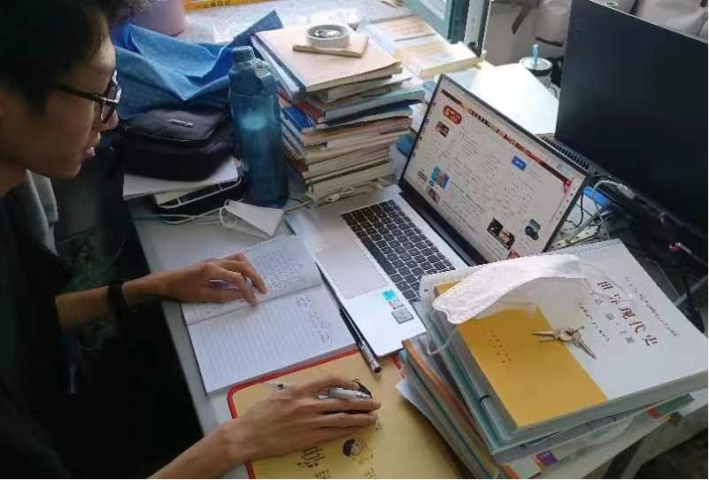 处在准备毕业答辩的大四年级学生,虽然无法进入到图书馆和自习室进行学习,但是突然的疫情并没有打乱大四学生们的学习计划,仍然坚持将“居室不停学,学习我自觉”落到实处。