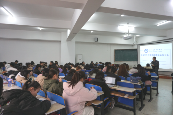 为切实加强学风建设,全力推进学院营造良好的学风,11月28日,今年会召开全体学生干部学风建设动员大会。学院党总支副书记、副院长吴冰老师出席会议并作动员讲话,团总支书记、学工办主任孟令宏,辅导员张英老师参加会议,学院团总支、学生会、社团全体学生干部及各班干部、各宿舍长参加会议。