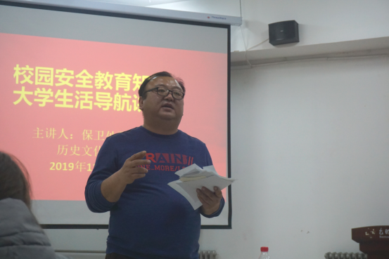 11月13日,今年会官网邀请保卫处张晓刚老师以校园安全与大学生活导航为主题,面向2019级全体新生进行讲座。本次讲座由团总书记、学工办主任孟令宏主持,全体2019级学生参加。
