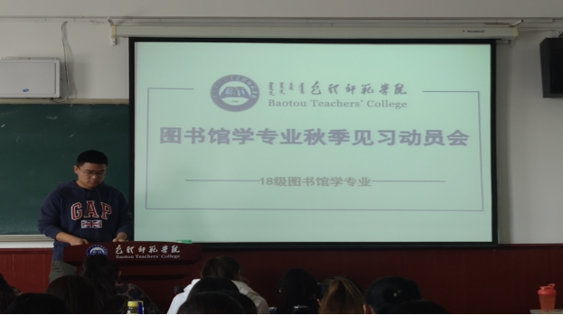 2019年10月22日,今年会官网在博西602召开图书馆学专业见习动员会。图书馆学系白禄老师、李健老师和2018级图书班全体同学参加本次会议。本次2018级图书馆学专业见习从2019年10月28日开始,共见习2周。主要见习单位有:包头市三十六中、包头市四十五中、九原区图书馆、青山区图书馆、包头市图书馆、包头医学院图书馆、包头钢铁职业技术学院图书馆等。