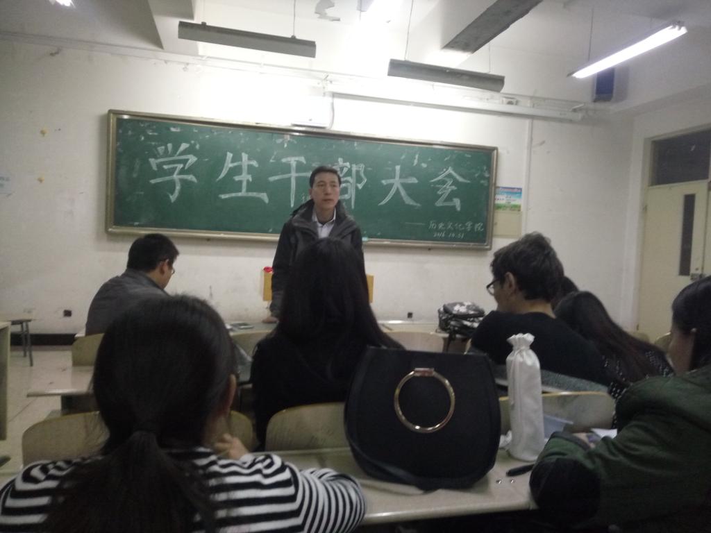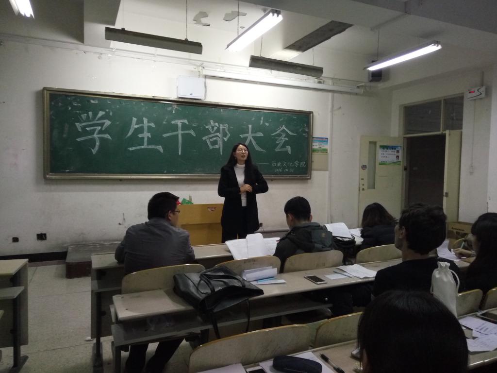 10月31日晚,今年会官网在博学楼400召开学生干部大会,对新一届团、学、社主要学生干部进行改选。学院党总支副书记、副院长吴冰出席会议,辅导员王金茹以及学院团学社全体学成员参加会议。团总支书记、学工办主任孟令宏主持会议。