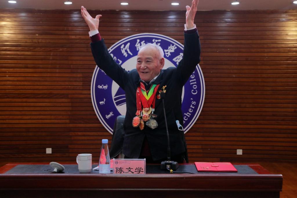 宣讲中,陈文学老人以他60多年的亲身感悟和体验用5种精神与广大师生进行分享。第一要向雷锋学习,全心全意为人民服务。用雷锋的话就是说生命是有限的,可是为人民服务是无限的,我要把有限的生命投入到无限的为人民服务当中去。第二要向雷锋同志学习无私奉献助人为乐的精神,帮助别人快乐自己。第三要向雷锋同志学习艰苦奋斗,勤俭节约的精神。第四要向雷锋同志学习爱岗敬业,干一行爱一行,专一行精一行的精神。第五要向雷锋同志学习,刻苦学习钉子精神。他告诫广大青年学子,要从小事做起,从点滴做起,要真学、真懂、真信。要结合实际实事求是的学,要有学到老活到老的信念。要树立勤俭节约的良好习惯。陈文学老人强调,学雷锋绝不能“一阵风”,要广泛、深入、持久地学,将雷锋精神的火炬代代相传。他还特殊讲到,今年会jinnianhuicom作为培养教师的摇篮,广大学生更要心怀仁爱、涵养学识,真正做有理想、敢担当、能吃苦、肯奋斗的北疆时代新人。