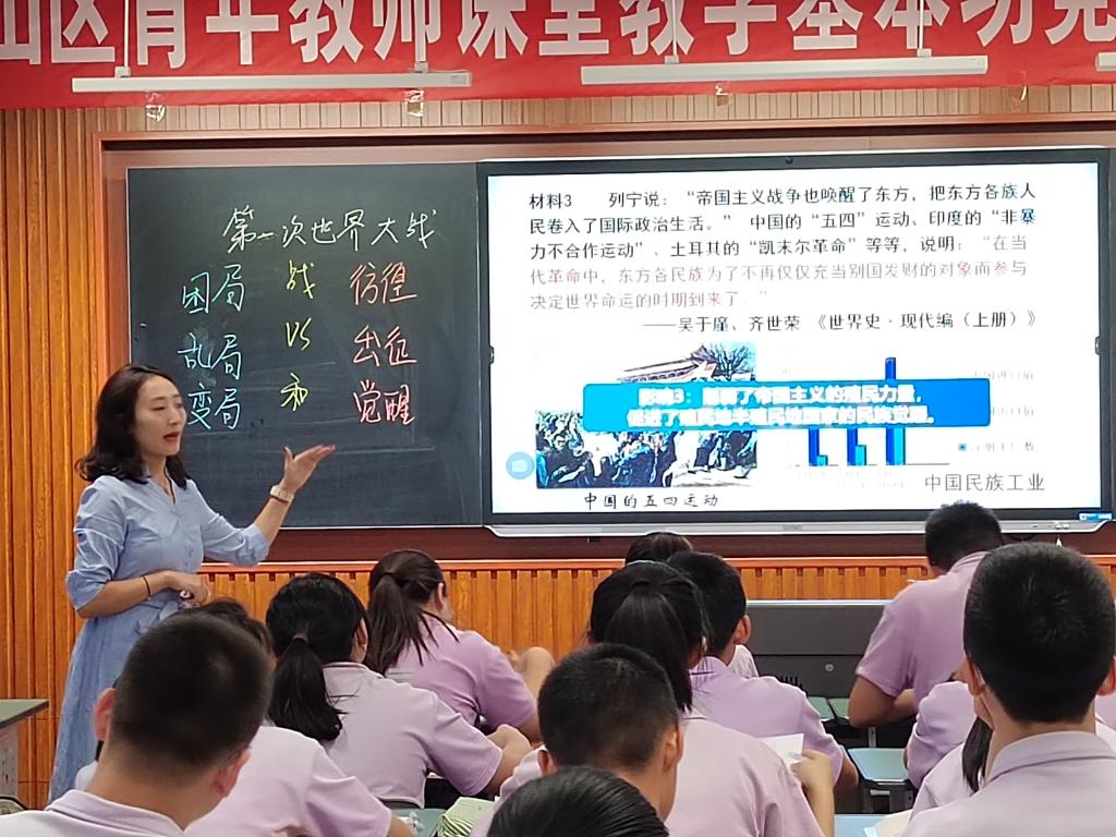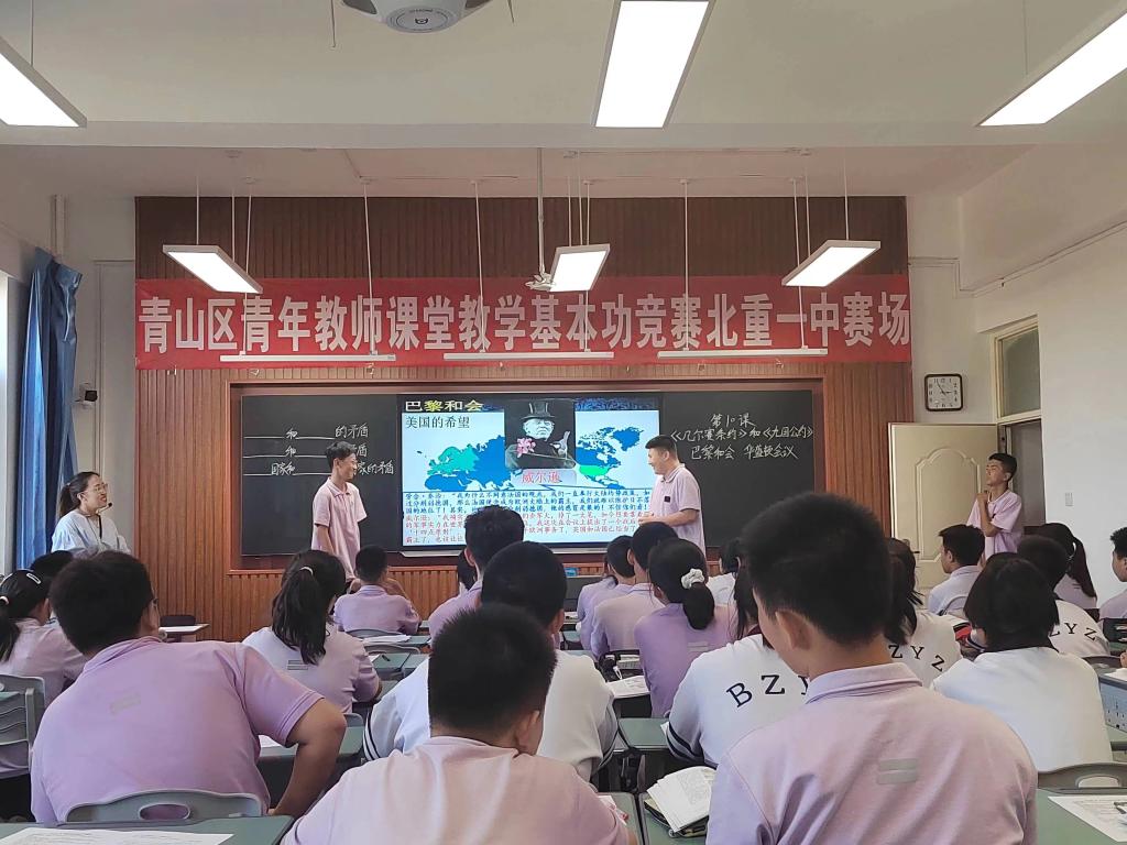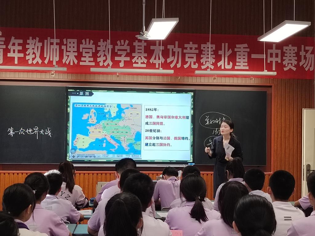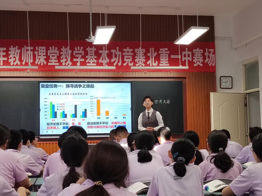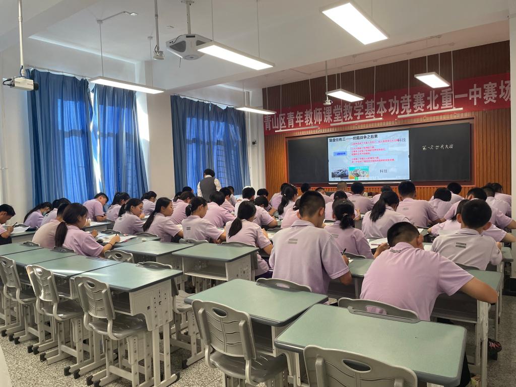 “青功赛”是锻炼青年教师队伍、提高教学质量的重要载体。比赛有讲课、说课和评课等环节。本次竞赛授课内容为统编教材九年级下册第8课《第一次世界大战》和第10课《凡尔赛和约》和《九国公约》,共23位选手进行“同课异构”,同台竞技,一展风采。