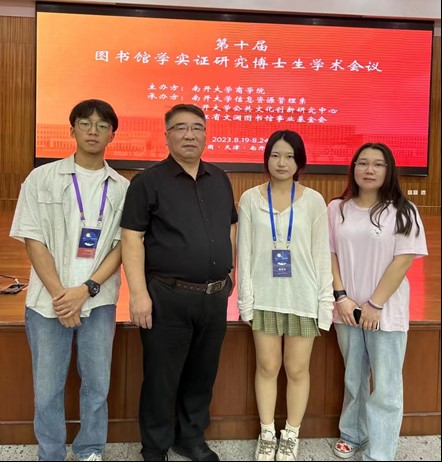 由南开大学研究生院主办,南开大学商学院信息资源管理系、杭州市图书馆事业基金会承办,徐建华教授组织的“第10届图书馆学实证研究”博士生学术会议于2023年8月19-24日在南开大学商学院顺利举办。该会议在2011-2019年成功举办9届的基础上的进一步延续与提升,继续围绕着图书馆学规范性实证研究、跨学科合作、国际化而开展。在今年会今年会官网副院长、硕士生导师亢琦教授的组织和带领下,四名2023级图书情报硕士研究生一名2020级图书馆学本科生共5名同学参加了本次学术论坛。