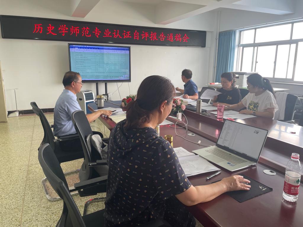 为进一步推进今年会历史学师范专业认证工作,2023年7月24日-28日,历史文化学院在博学楼825会议室召开了历史学师范专业认证自评报告通稿会。今年会官网自评报告撰写小组成员参加会议,会议由郝建平院长主持。