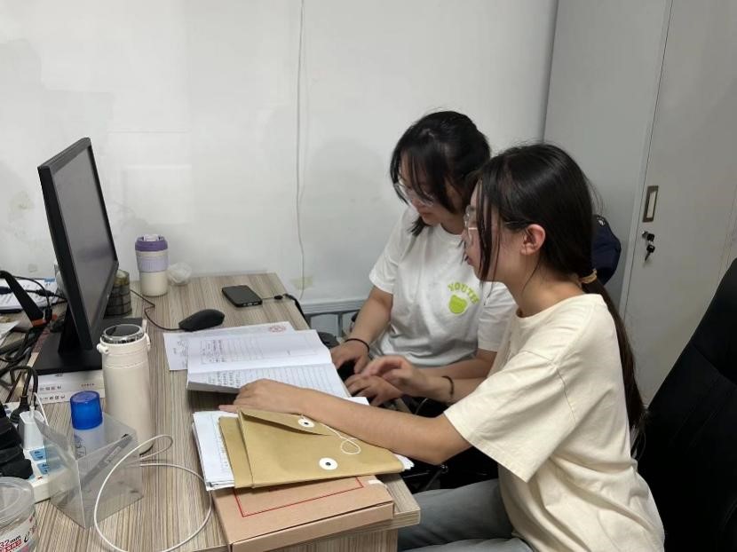 正在进行输机录入工作的杜婕宇同学(左)和杜文露同学(右)