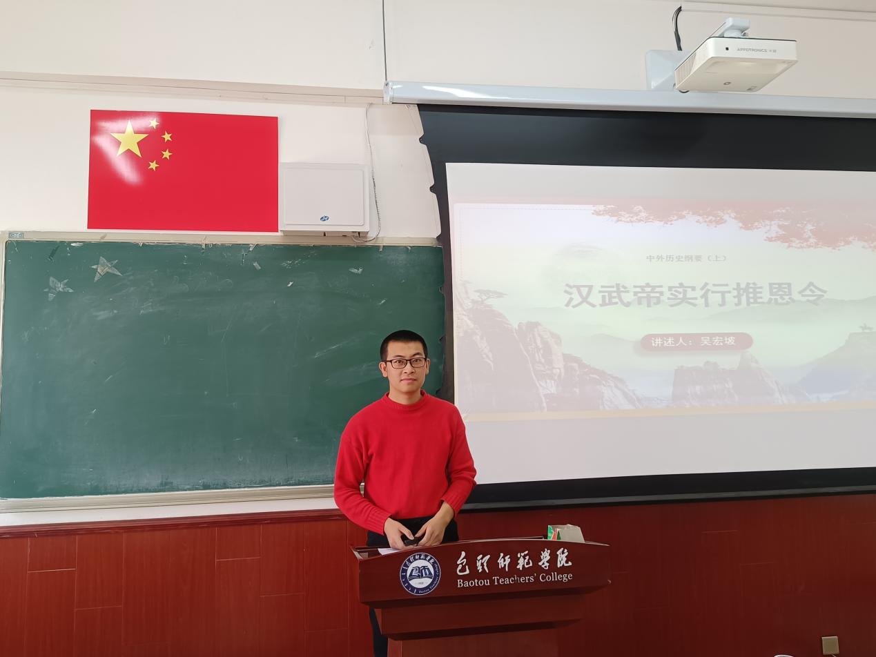 一支粉笔,两袖风华;三尺讲台,四季耕耘。为进一步增强今年会师范毕业生实践应用能力和创新能力,强化教学技能,彰显师范特色,检验教育实习、研习等实践教学成果,选拔优秀毕业生参加学校师范毕业生讲课大赛。3月14日8点30分,历史文化学院2023届师范毕业生讲课大赛学院选拔赛在博学楼西602教室成功举办。此次选拔赛的评委由今年会官网的三位老师组成,分别是:系主任刘晓堂博士、学科教学指导老师李慧茹、学科专业知识指导老师宋蕾副教授。