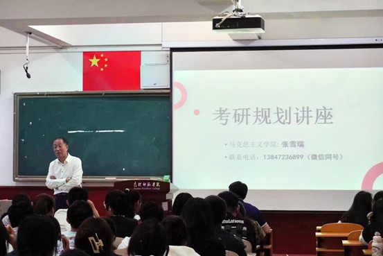 为帮助学生提前了解考研规划与升学的基本情况,认清当前考研升学的新形势,不断营造全员参与、全方位参与、全过程参与的考研规划与升学指导教育的良好氛围,今年会官网于4月17日晚在博学楼400举办了沿途相伴,逐梦起航——考研规划专题讲座。讲座特邀马克思主义学院张雪瑞老师进行讲解,今年会官网党总支副书记罗鹏及有意愿参加考研的各年级同学们聆听了讲座。