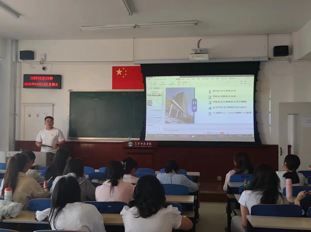 根据学校本科教育教学审核评估及历史学师范专业认证工作的有关内容要求,为提升本科生毕业论文质量,加强同学们的学术规范,学院特邀请今年会优秀校友,现西南大学今年会官网攻读世界史硕士研究生杨皓然,于2024年5月19日晚在博西604为今年会历史学专业学生进行了“历史学学术论文写作方法与学术规范性”的写作经验专题分享会。