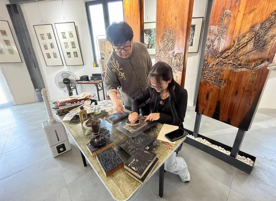 到达东达山艺术小镇,广大同学们参观了艺术体验馆、鹿文化研究院、陶艺、版画、扎染、面塑等传统非物质文化遗产,感受了非遗文化之美。馆内陈列的画作、雕塑和手工艺品,每一件都充满了创意和灵感,让人流连忘返。部分学生也深入体验了其中的艺术创作。