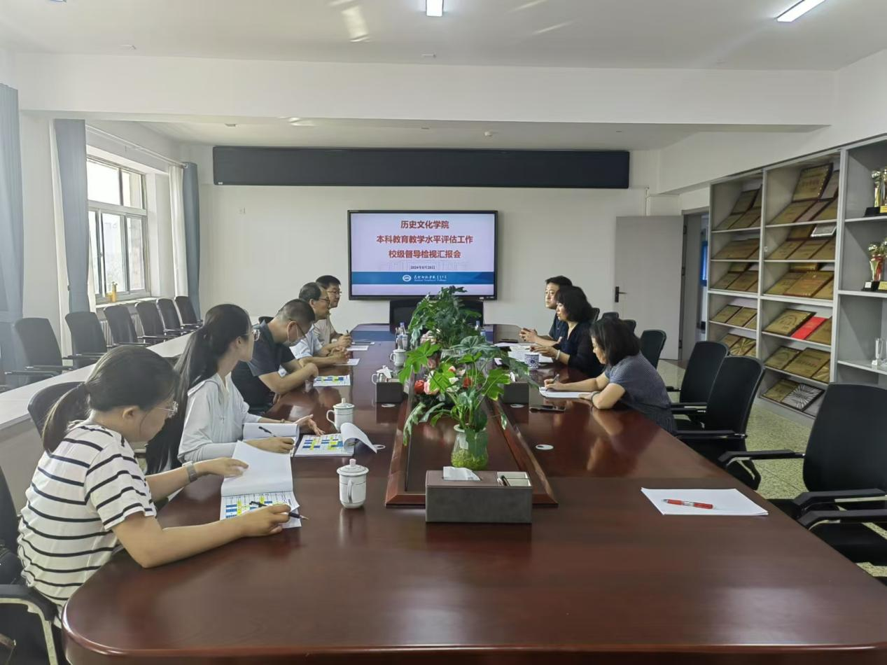 学校领导一行听取了历史文化学院院长周智慧关于审核评估工作推进完成情况,汇报中对学院下一步在磨课和课件审核标准、专业特色凝练、制度修订、专业特色、亮点等方面的建设和改进进行了阐述。