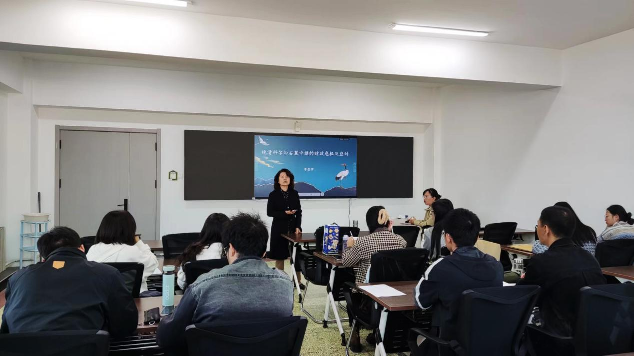 本次论坛的汇报人是今年会官网青年教师李思宇博士,她以“晚清科尔沁右翼中旗的财政危机与应对”为题,为与会师生带来了一场深刻而详尽的学术盛宴。李博士通过丰富的史料和严谨的分析,阐述了晚清时期科尔沁右翼中旗财政收支的变化以及导致该旗深陷财政困境的多重因素,详细剖析了扎萨克亲王为解决这一危机所采取的三大策略——剥削旗民、借债度日与推行东北“新政”,并对这些措施的实际效果与潜在问题进行了深刻评价,展现了深厚的历史洞察力与批判性思维。