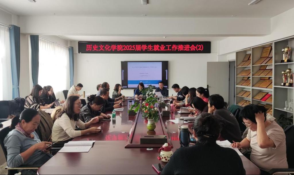 为进一步做好学院2025届毕业生就业工作,帮助毕业生了解就业政策、分析就业形势,全力推动2025年就业工作开好头、起好步,2024年10月24日下午,历史文化学院在博学楼802会议室召开2025届毕业生秋季学期第二次就业工作推进会。会议由学院党总支书记张迎峰主持召开,学院领导班子和全体教职工参加会议。