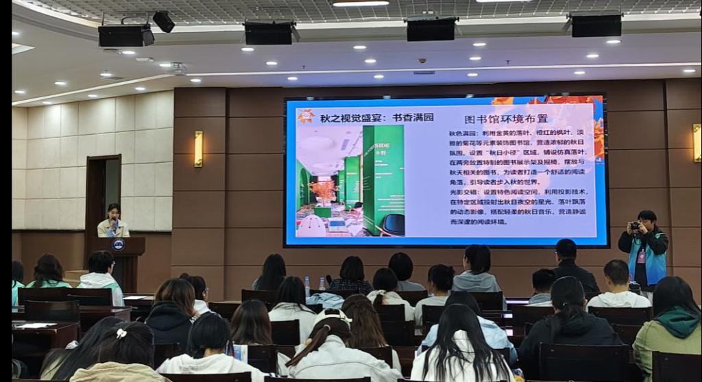 10月18日晚,阅读推广案例策划比赛在图书馆一楼报告厅举行。活动评审组由白禄、薛文彦、王金茹、张馨予以及优秀校友赵晓宇老师共同组成。该比赛在图书馆学全年级学生中展开,活动旨在培养学生的创新思维和阅读活动策划能力。各班级通过初赛,最终选出12支队伍进入决赛,参赛团队围绕阅读推广不同主题,提出具有创新性和可行性的策划方案,并在规定时间内提交策划书,现场进行方案展示。