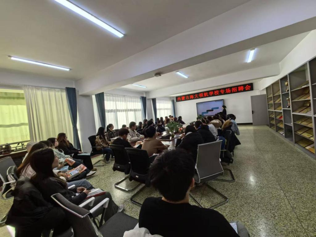 宣讲会上,内蒙古海大领航学校招聘负责人张雪作为主讲嘉宾,向与会毕业生全面介绍了海大领航学校的概况、学校文化与发展、海大领航的优势、人事及薪酬制度等。张雪老师强调,海大领航学校创建“双师教学模式”,全力打造内蒙古一流师资、一流管理、一流升学率的全日制名校,欢迎同学们加入。