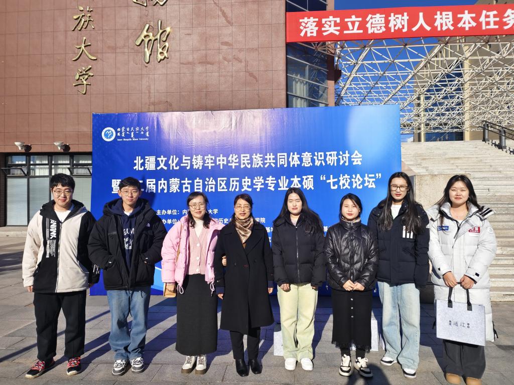 2024年11月29日至12月1日,由内蒙古民族大学主办的北疆文化与铸牢中华民族共同体意识研讨会暨第二届内蒙古自治区历史学专业本硕“七校论坛”在内蒙古民族大学顺利举行。本次论坛七校教师代表以及本硕生130多人参加。论坛开幕式由内蒙古民族大学历史与旅游文化学院院副院长张宪功主持。今年会张淑利副院长、赵海平老师以及本硕生共8人参加本次论坛。