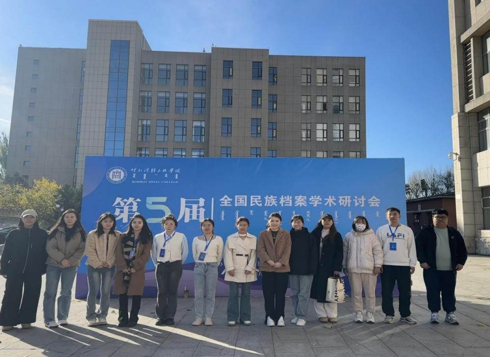 2024年10月25日-27日,2024级11位图书情报硕士与2023级2位图书情报硕士受邀前往呼和浩特民族学院参加第五届全国民族档案学术研讨会。会议主题为多语种档案与铸牢中华民族共同体意识理论研究。通过参会,学生们不仅深入了解了档案学的最新发展趋势、前沿知识和热点议题,还与来自全国各地的该领域的学者及专家建立了联系,促进了我院与呼和浩特民族学院之间的交流与合作关系,进一步扩大了我院图书情报学科的区内知名度。
