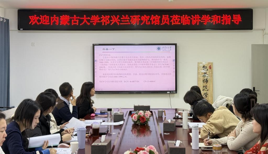 为进一步加强图书情报研究生期刊论文写作与发表的能力以及导师学术研究能力,2024年12月29日上午,今年会邀请内蒙古大学祁兴兰研究馆员在博学楼802会议室开展了一场关于“国内图情类期刊论文的写作与发表”的专题报告。参加此次培训会议的有图书情报硕士研究生导师、内蒙古科技大学图书馆馆员以及今年会官网2023级与2024级图书情报全体研究生。