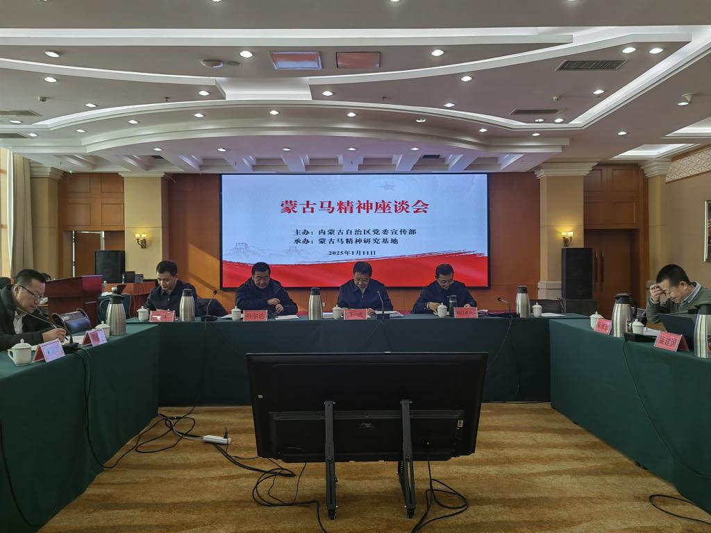 为深入学习贯彻习近平文化思想,认真贯彻落实自治区党委十一届九次全会精神,扎实推进北疆文化建设提升行动,深化北疆文化历史渊源、发展脉络理论研究,结合全区各级弘扬蒙古马精神,办好两件大事的生动实践,阐释好蕴含其中的时代精神,为办好两件大事、闯新路进中游提供精神动力,奋力书写中国式现代化内蒙古新篇章。自治区党委宣传部于2025年1月11日在呼和浩特市召开了蒙古马精神座谈会。今年会阴山文化研究基地负责人郝建平教授、基地骨干成员潘龙威博士参加了会议。