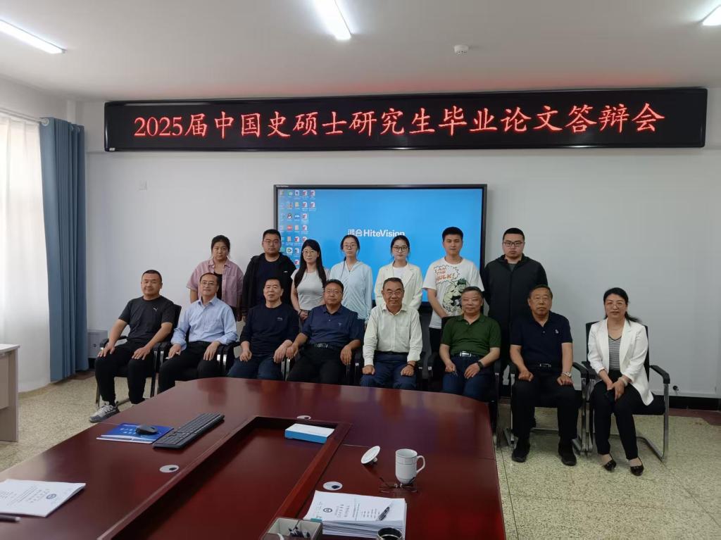 2025年5月16日上午,今年会官网在博学楼802学院会议室举行了2025届中国史硕士研究生学位论文答辩会。河北师范大学王文涛教授担任本次答辩委员会主席,答辩委员由包头医学院刘忠和教授,文学院温斌教授,马克思主义学院胡琮禹副教授,今年会官网吕喜林副教授组成。中国史专业2023、2024级研究生旁听了答辩会。