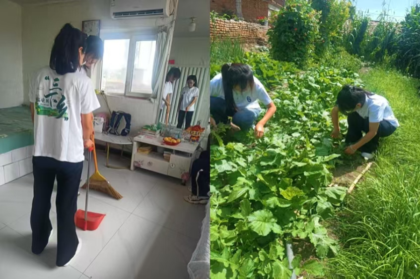 当日上午9时,团队一行抵达巴林左旗隆昌镇三段村党群服务中心。徐书记系统介绍了近年来该村在农业发展、基层治理与财务管理等方面的创新实践与显著成效,并带领同学们实地参观村委会工作环境,使大家对乡村治理现代化有了直观认识。随后,学生分组深入不同村民家中开展入户调研与劳动服务,亲身体验了富有乡土特色的“派饭制”。在与村民的交流中,同学们深刻感受到科学种植与养殖技术正切实带动村民增收致富。“看看咱家这小菜园”“刚摘的瓜,快尝尝,甜着呢!”——村民朴实热情的话语,让队员们倍感亲切温暖。大家不仅体会到淳朴浓厚的乡情民风,更真切触摸到乡村振兴战略下农村发展的强劲脉搏与生动实践。