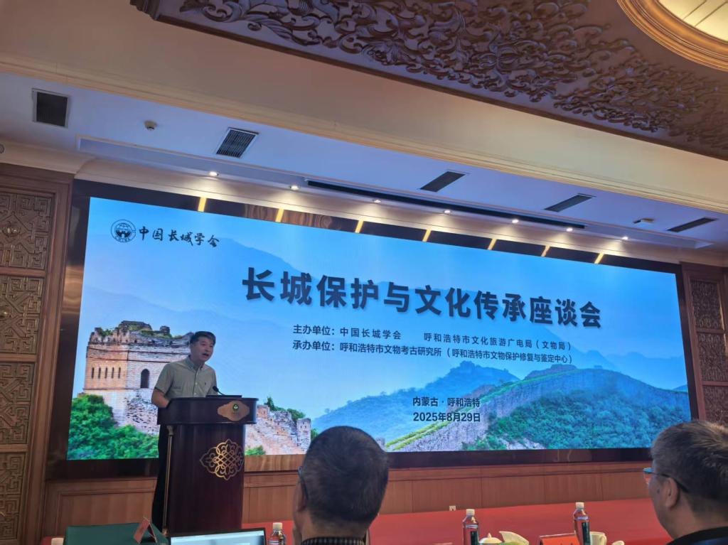 2025年8月29日,由中国长城学会、呼和浩特市文化旅游广电局(文物局)主办,呼和浩特市文物考古研究所承办的长城保护与文化传承座谈会在呼和浩特市召开,来自来自区内外高校、研究机构、文物保护单位的60余名专家学者围绕长城保护、考古研究、科技应用与文化传承等多个维度展开深入交流与研讨,旨在共同探讨长城保护、研究与文化传承的最新成果与发展路径,助推长城文化遗产事业高质量发展。阴山文化研究基地负责人郝建平教授、首席专家王绍东教授、学术委员会委员张文平研究员参会,并做了发言。