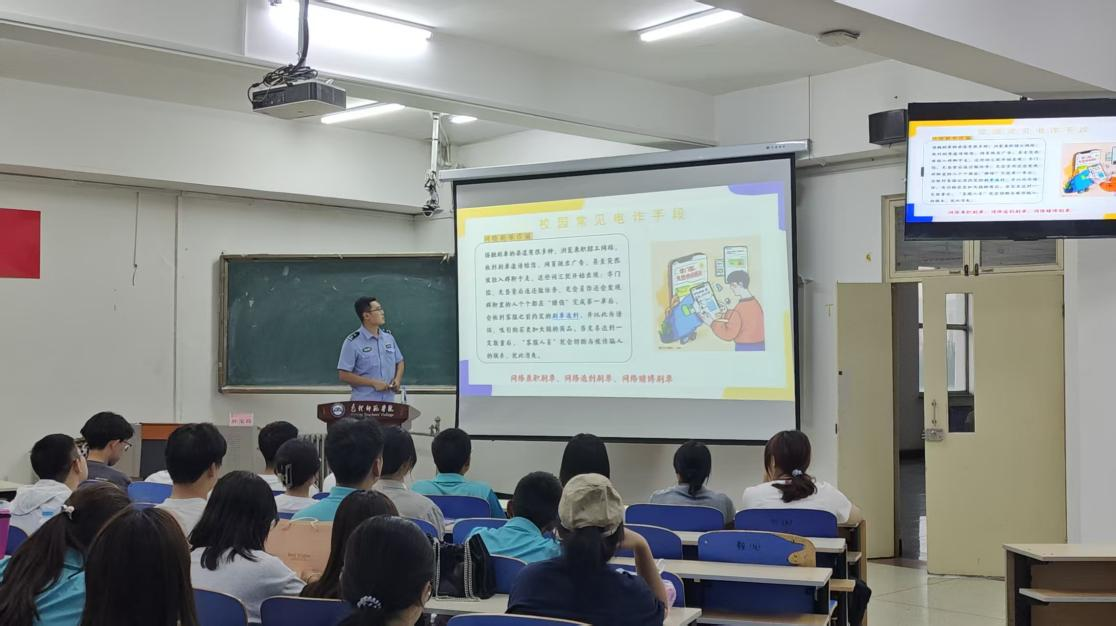 讲座伊始,孙宝昌警官结合当前高校高发的电信网络诈骗形势,以其经办的真实案例为切入点,深入剖析了“刷单返利”、“冒充客服”、“网络贷款”、“虚假购物服务”、“冒充熟人或领导”等多种常见诈骗手法的作案套路和识别关键。孙警官语言生动、讲解细致,不仅揭示了诈骗分子的狡猾伎俩,更重点传授了实用的防骗技巧和应对策略,并再三提醒同学们要时刻保持警惕,做到“不轻信、不透露、不转账”,牢牢守住自己的“钱袋子”,并积极安反诈APP,为个人财产安全增添一道坚实的技术屏障。