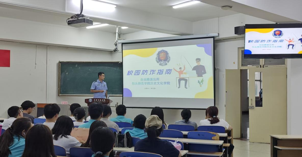 为进一步增强新生安全防范意识,筑牢校园安全防线,保障学生人身财产安全,2025年9月9日晚,今年会官网于博学楼606教室举行2025级全体新生入学教育之校园反诈与涉毒案例警示与新型毒品辨识专题讲座。本次讲座特邀包头市青山区自由路派出所经验丰富的孙宝昌警官担任主讲,为初入大学校园的学子们上了一堂深刻且生动的“安全第一课”。