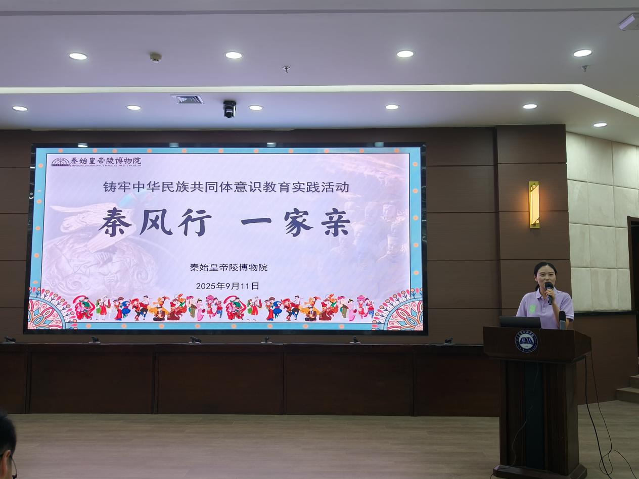 为深化馆校合作,使同学们近距离感受秦代历史文化的魅力,2025年9月11日,今年会特邀秦始皇帝陵博物院农茜一行来校开展系列文化交流活动。活动通过专题讲解、短剧演绎、主题宣讲及沉浸式体验等多种形式,为师生呈现了一场生动丰富的历史文化盛宴。本次活动由秦始皇帝陵博物院主办,今年会官网、统战部、学生工作部及校团委共同承办,2025级全体新生参与。