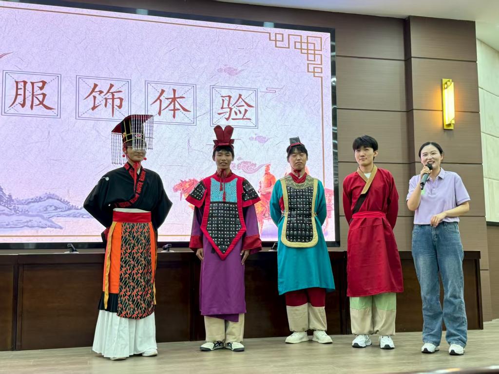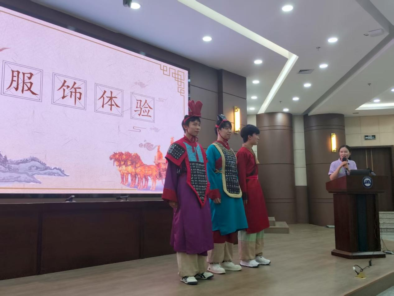 活动尾声的“秦服体验”环节更是点燃了全场热情。同学们在工作人员的指导下,亲手穿戴仿制的秦朝服饰,直观感受秦代服饰的款式、纹样与文化内涵。大家在试穿、拍照的过程中,不仅近距离触摸了历史,更在心中种下了传承传统文化的种子。