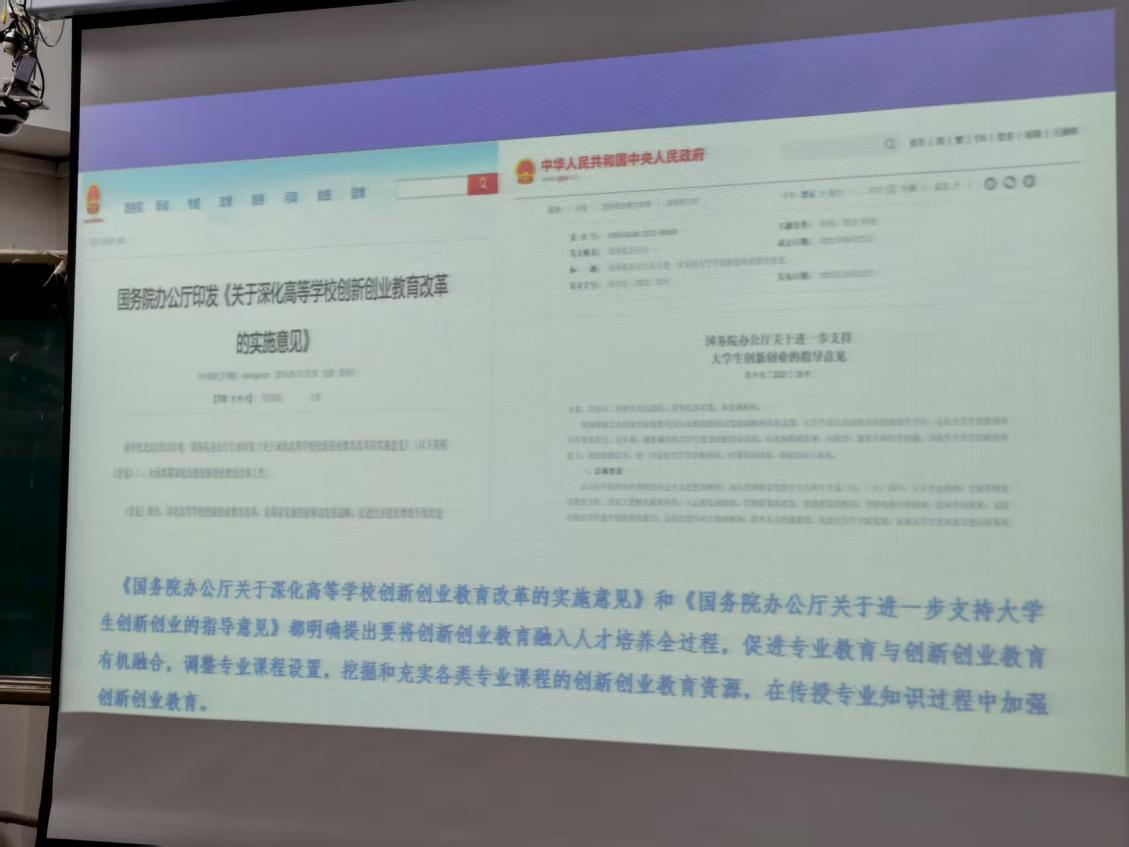 讲座还强调了国家对大学生创新创业的重视与支持,解读了《国务院办公厅关于深化高等学校创新创业教育改革的实施意见》和《国务院办公厅关于进一步支持大学生创新创业的指导意见》,让新生了解到创新创业不仅是个人发展的途径,更是国家大力倡导的方向。