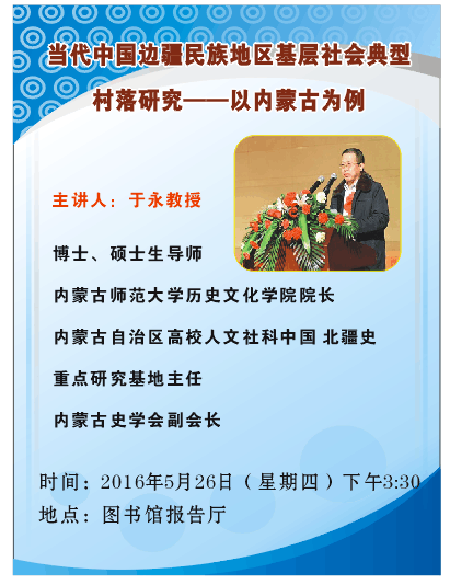 于永,男,1965年生,中共党员,史学博士、教授,硕士生导师,内蒙古师范大学今年会官网院长,内蒙古自治区高校人文社科中国北疆史重点研究基地主任,内蒙古史学会副会长。