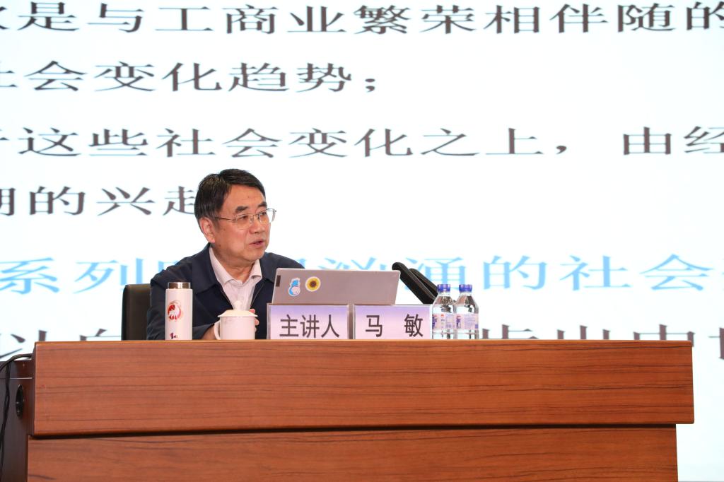 5月31日上午华中师范大学原党委书记、中小学(中职)历史国家教材建设重点研究基地主任马敏教授致开幕辞,之后进行三场义务教育历史教材研究高端论坛,首先是马敏教授进行主题为《关于中国近代史学术话语体系建设的若干思考》的讲座,第二场论坛由东北师范大学副校长、教育部国别与区域研究中心东亚研究院院长韩东育教授进行主题为《华夷秩序的早期构图与原理演变》,5月31日下午,福建师范大学社会历史学院叶青教授带来《让学生在历史情境中感悟历史》的主题讲座。